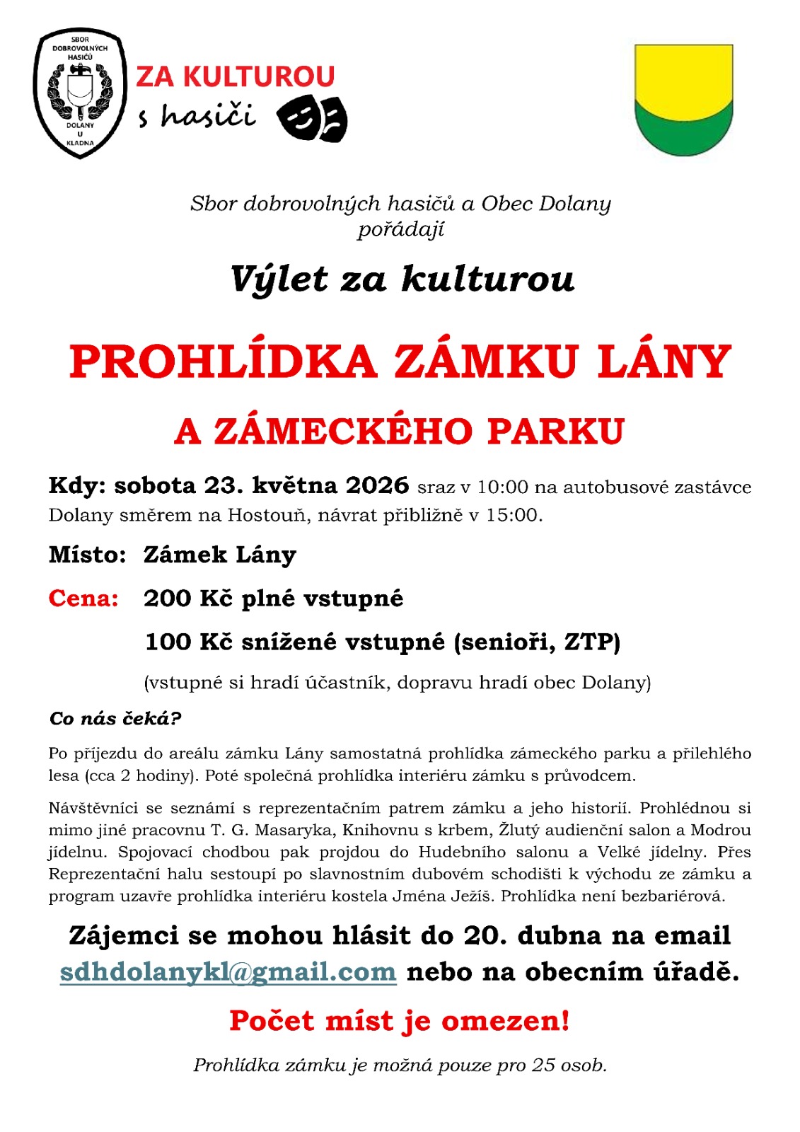 ✅️ Zájemci se mohou hlásit do 20. dubna na email sdhdolanykl@gmail.com nebo na obecním úřadě.